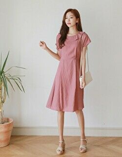韓国ファッションで人気のAラインドレス。シンプルデザインで大きめ2ポッケもナイス。ガーリーフェミニンな絶妙のバランスのアイテム。