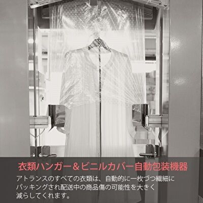 商品は自動で一枚ずつ包装され、配送時のコスレやシワ等も出ないように施されています。