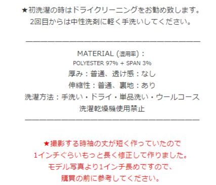 サイト内の商品には全て、細かくサイズ情報・品質表示・透け感・生地厚み等、さらには洗濯方法まで詳しく記載されています。