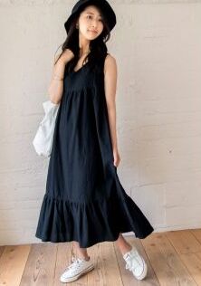 [バックリボンティアードワンピース]