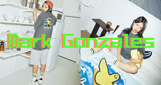 [Mark Gonzales]は、今ストリート系スタイルで大注目のファッションブランド。ちなみに[Mark Gonzales]とは、アメリカのプロスケートボーダー&アーティストのマーク・ゴンザレス(1968年6月1日生まれ)自身の名前を施したブランド。