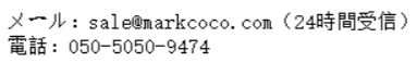 | 連絡 | sale@markcoco.com/034-572-0152 |
