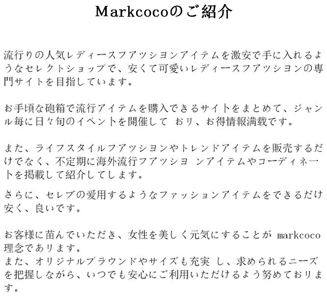 下記は[MARKCOCO]通販の紹介文ですが、日本語や漢字の使い方の不自然さがあります…