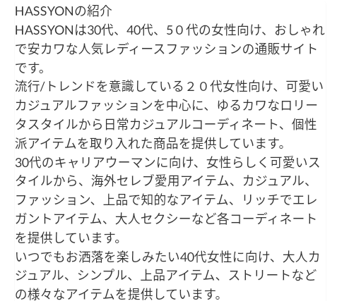 ちなみに[HASSYON]通販サイトURLは[www.hassyon.com]